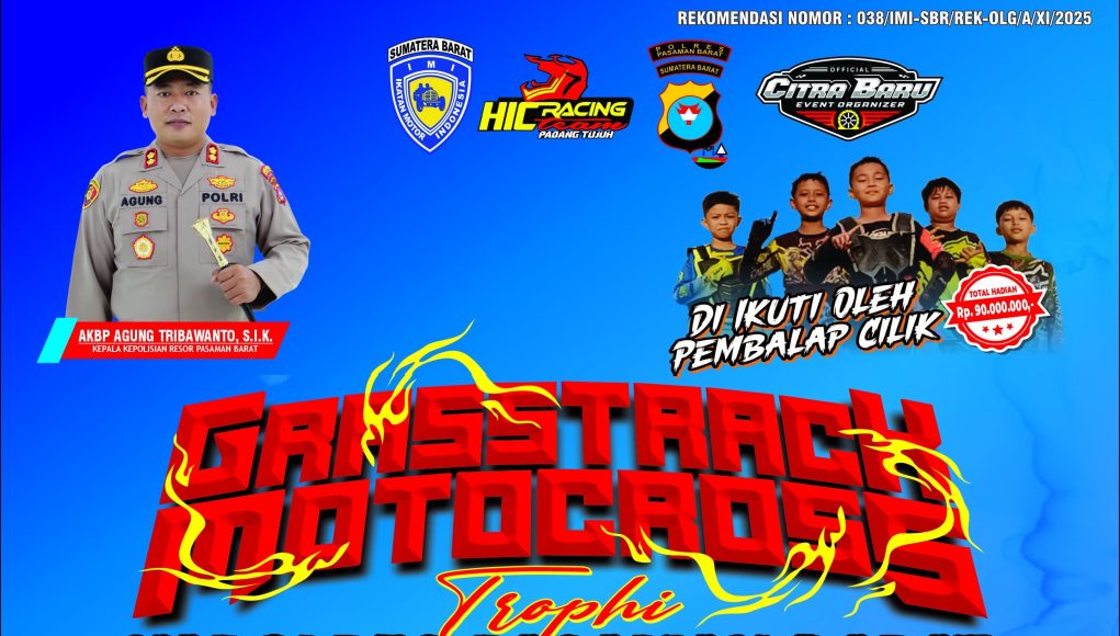 Pasaman Barat-Polres Pasaman Barat berkolaborasi dengan komunitas otomotif dan sejumlah sponsor menggelar ajang Grass Track & Motocross Trophi Kapolres Pasaman Barat, sebagai bentuk kepedulian terhadap warga yang terdampak bencana di Kabupaten Pasaman Barat.